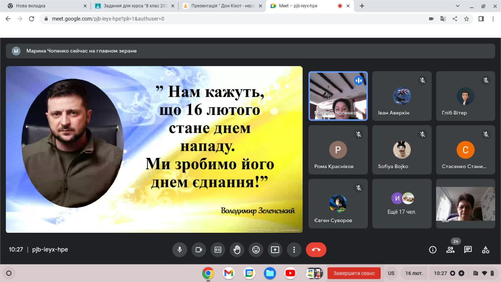 Сьогодні 1000 день героїчної оборони українського народу російським загарбникам. Учні 8 класу переглянули цікаві матеріали, що стосуються подій боротьби нашого народу за незалежність.